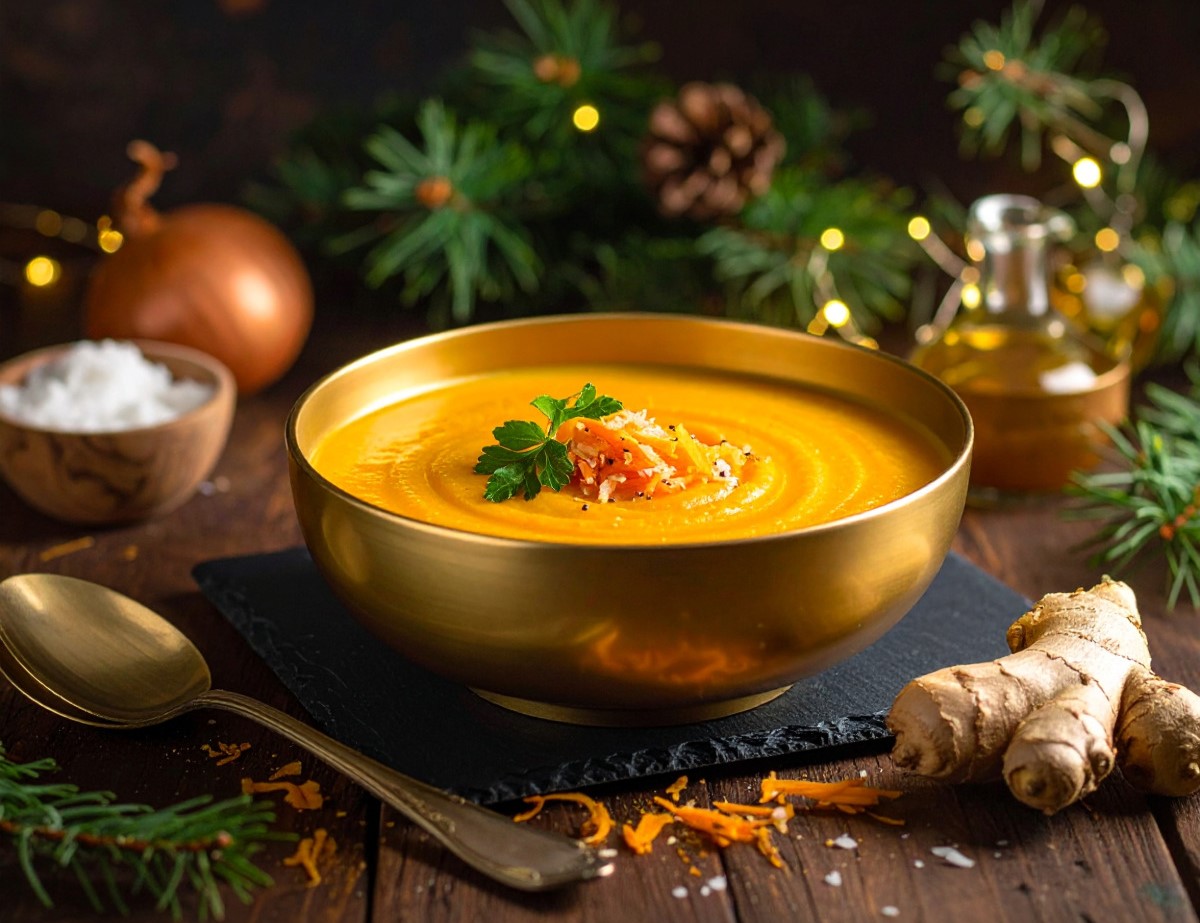 Wärmender Starter: Karotten-Kokos-Suppe mit Ingwer. Foto: KI
